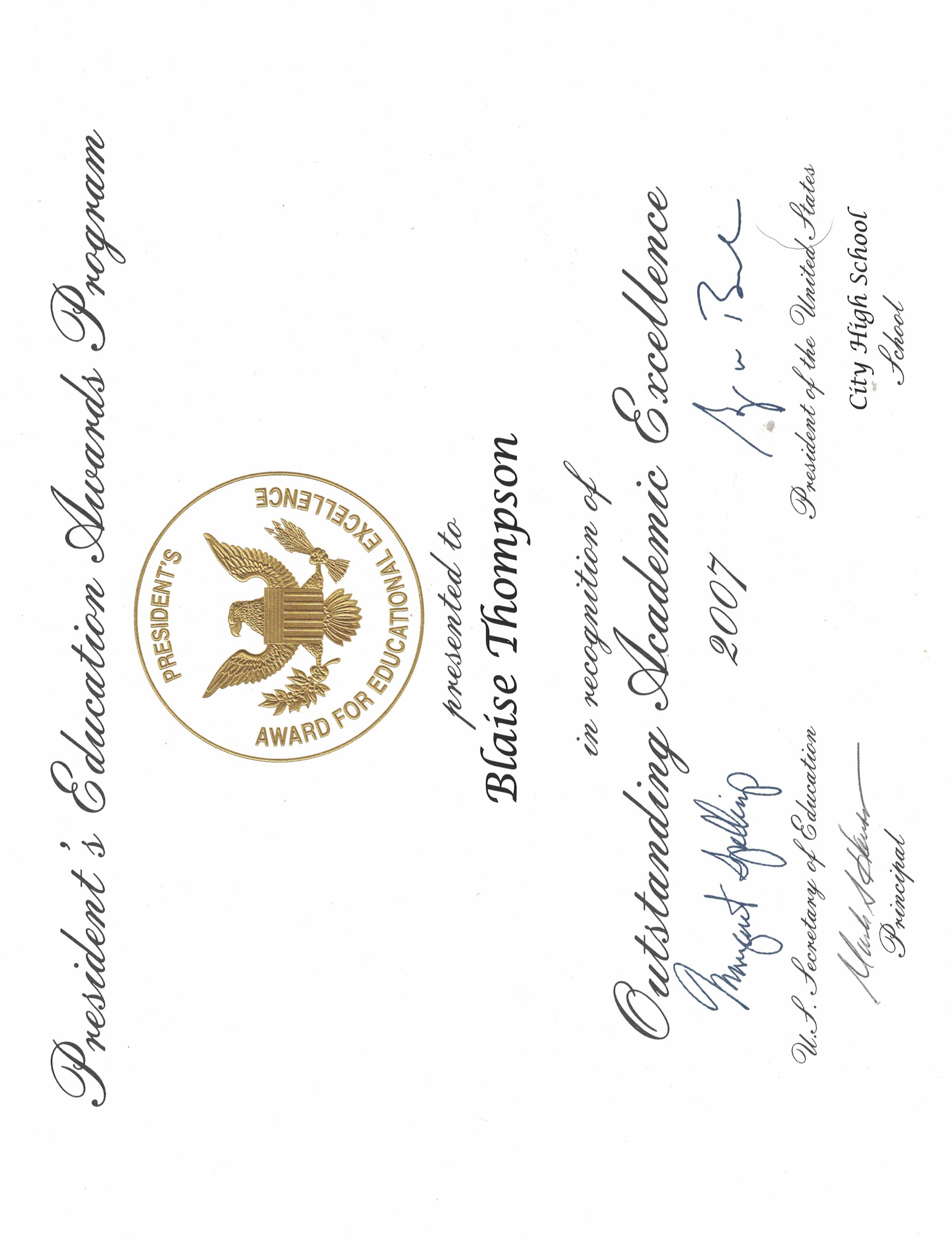 Awarded by Bates College faculty and staff to 20 students in each graduating class based on academic standing, character, campus and community service, leadership, and future promise.President's Excellence Award 2007